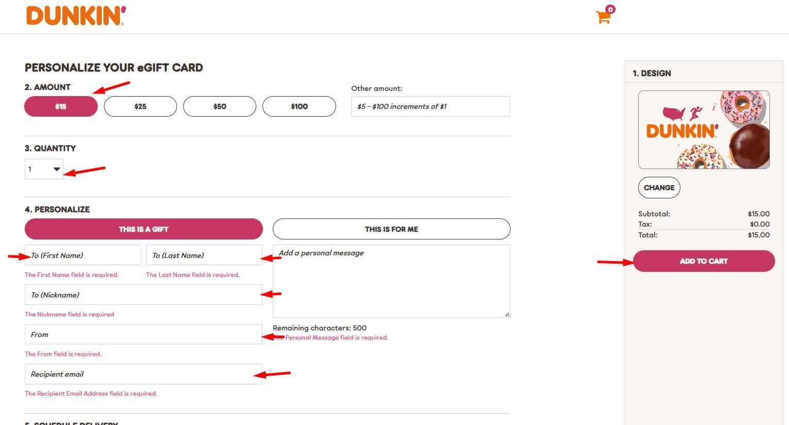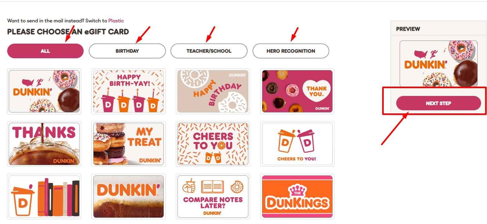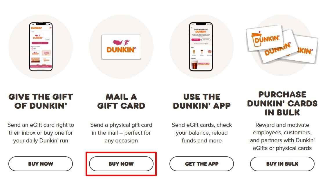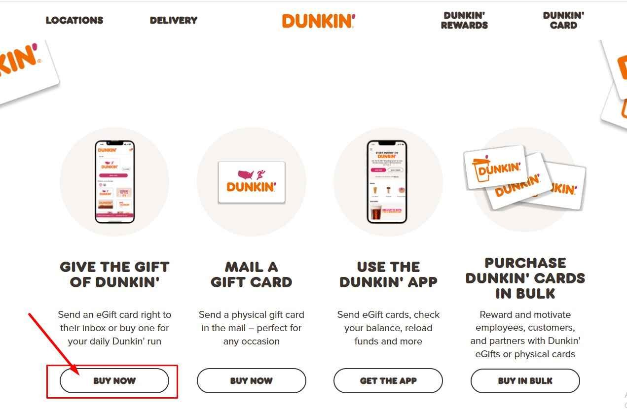 - Visit the Dunkin’ website (dunkindonuts.com) and open the Gift Cards section.